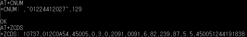 4. 이후에 AT Command로 +CNUM, +ZCDS를 입력해서 정보를 확인한다.