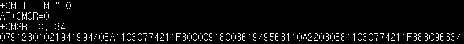 AT+CMGR로 0번째 메세지를 확인할 수 있다.